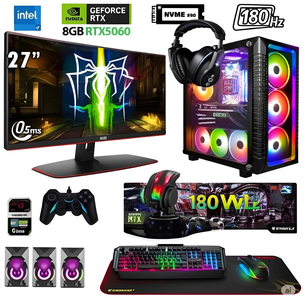 Intel i7 14700F işlemci gücü, 32GB DDR5 RAM, 1TB M.2 NVMe SSD depolama ve NVIDIA RTX 5060 8GB ekran kartı ile donatılmış bu oyuncu bilgisayarı, 27" 180Hz yüksek yenileme hızlı monitör ile kusursuz bir oyun deneyimi sunar. En zorlu oyunlarda yüksek FPS değerleri elde ederken, hızlı yükleme süreleri ve akıcı görüntü performansı sayesinde oyun keyfiniz kesintisiz devam eder. Modern ve şık tasarımıyla hem performans hem de estetiği bir arada sunar.